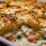 If your filling seems runny, stir in an extra tablespoon of flour mixed with a little cold water before baking — it won’t hurt the flavor, only the puddle (and we don’t need puddles); for a different cozy twist, pair this with a stuffing-based casserole like my go-to hearty chicken and stuffing casserole on nights you want something more rustic.